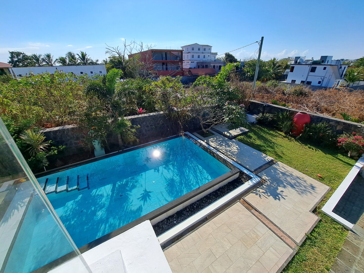 This contemporary villa is located along the royal road, near Butte à l'Herbe. Designed for comfort and modern living, it features three spacious bedrooms, each with its own en-suite bathroom, ensuring privacy and convenience. The carefully maintained garden includes a slate pool, perfect for cooling off and relaxing. The large living spaces are designed to accommodate moments of conviviality and relaxation with family or friends. The billiard room adds an extra touch of entertainment to this home. This villa is ideal for a family seeking a pleasant and luxurious living environment. Garden and pool maintenance are included in the price, ensuring worry-free upkeep. Additionally, alarm assistance service is provided, ensuring optimal peace of mind.
