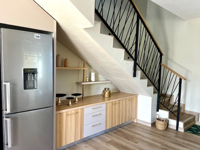 This beautiful home consists of 3 bedrooms (1 en-suite) , a common bathroom and a guest toilet. The ground floor features an open-plan kitchen/ lounge opening onto a lovely patio furnished with stylish garden furniture for outdoor relaxation and entertainment.