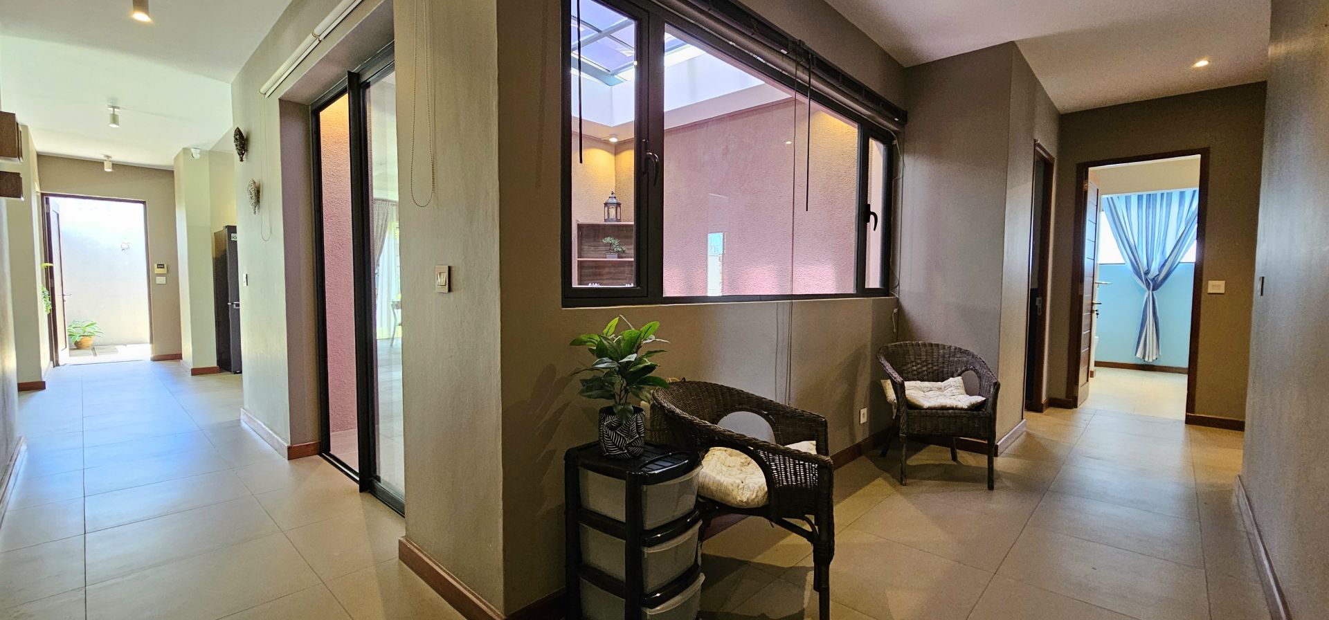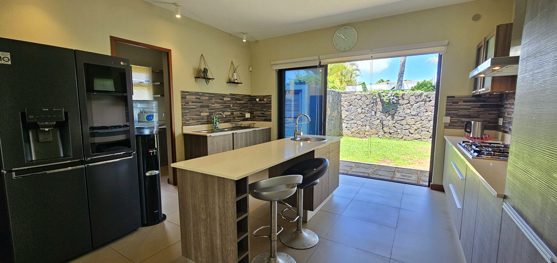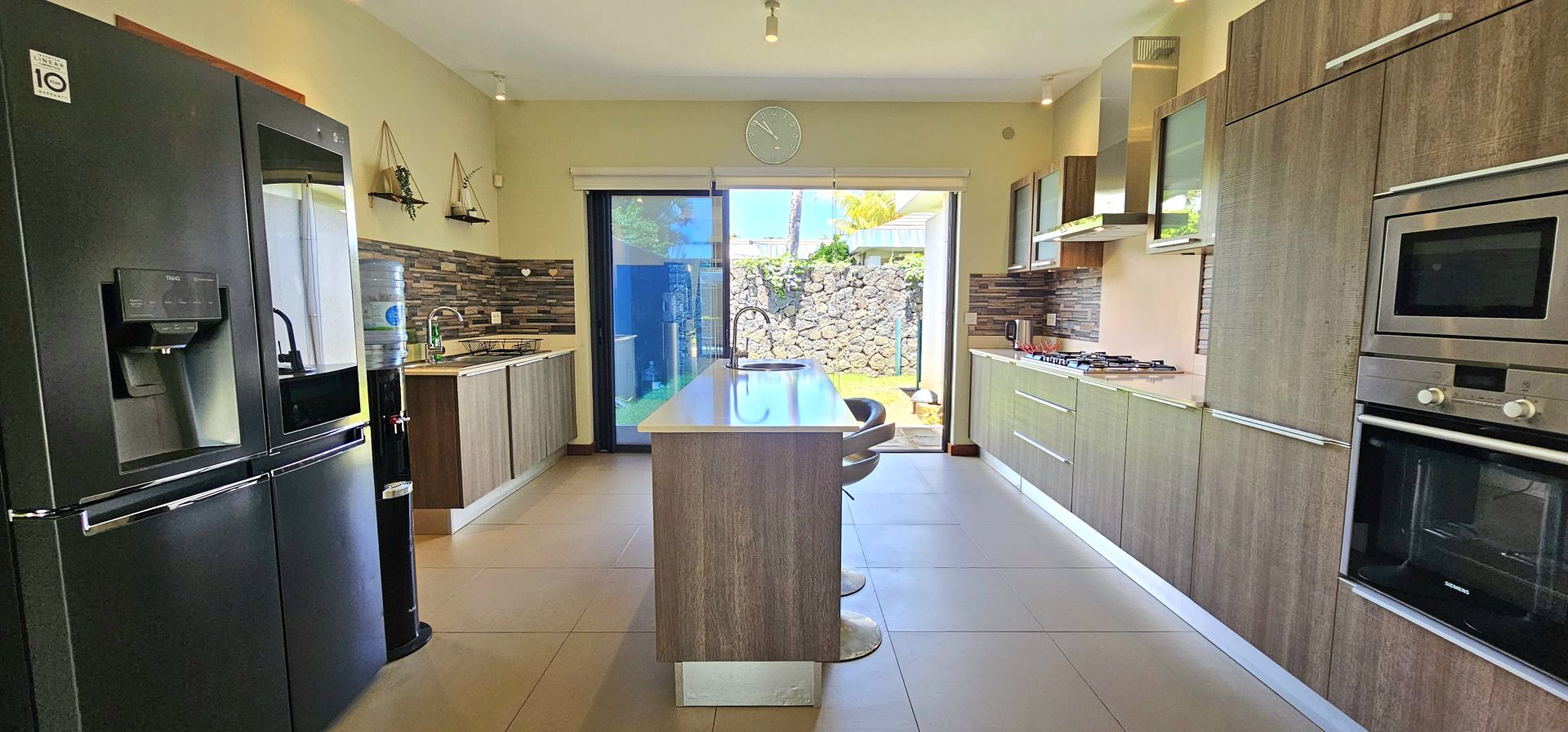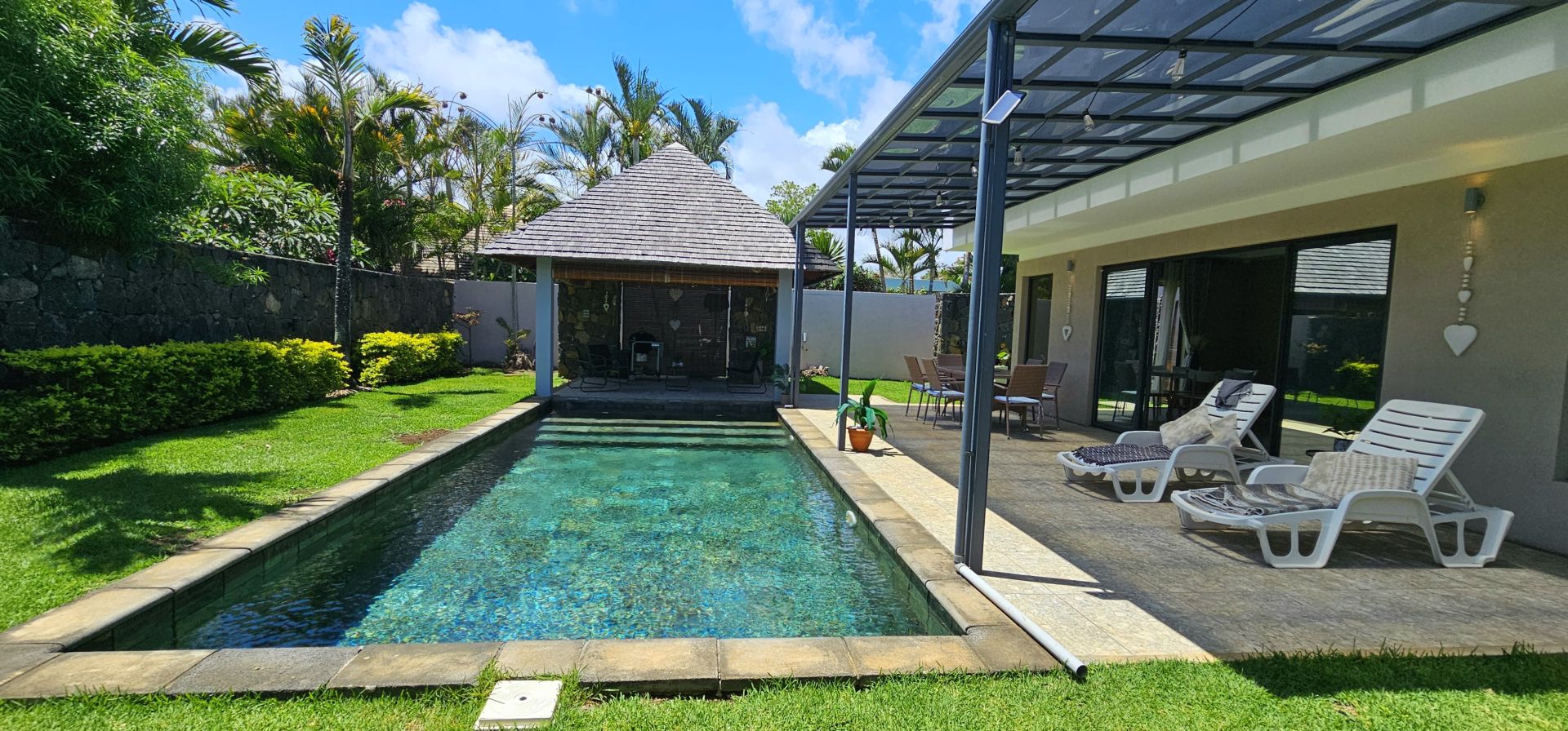 Tucked away just eight minutes inland from the calm, reef-protected waters of Bain Boeuf beach, this spacious villa offers relaxed island living with all the everyday comforts of home. The North Coast of Mauritius is known for its beautiful sunsets and wide range of water activities — from safe swimming and snorkeling to stand-up paddling and water skiing — all within the shelter of the reef and away from the prevailing south-easterly winds. Located in a small, well-maintained complex, this villa has been home to expat owners and is ideally suited to families — whether you're relocating with children or looking for space when friends and family visit. The home offers a generous layout with four bedrooms (two en suite), including a master suite with a luxurious bathroom, outdoor shower, walk-in wardrobe, and a private patio — perfect for enjoying your morning coffee in the sun. The heart of the home is the open-plan kitchen and living area, which flows seamlessly onto a covered terrace and bar area overlooking a private garden and sparkling pool. The kitchen is well-equipped and ideal for entertaining, with a separate scullery, laundry, and a single garage for convenience. Remote working is made easy with a dedicated office and an additional study area. The property is pet-friendly and sold semi-furnished. A short drive from Grand Baie’s shops and restaurants, and with easy access to the M2 freeway, this villa offers both lifestyle and practicality in one of the North’s most sought-after areas. Don’t hesitate!