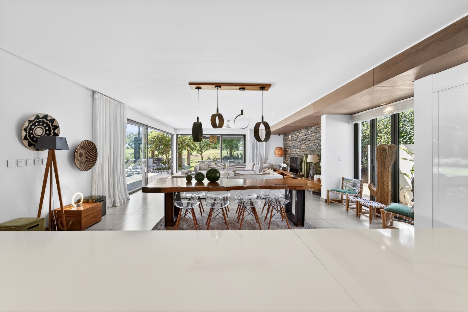 The latter have been designed to accommodate both refined daily living and elegant hosting, with a large lounge, an elegant dining area, and a beautifully appointed kitchen. Generous openings create a fluid transition to the outdoor spaces, revealing wide terraces, both semi-covered and open, perfectly designed for refined alfresco living. The manicured grounds and private pool provide an exceptional setting for relaxation, offering a sense of seclusion while remaining connected to the privileged golfside environment.