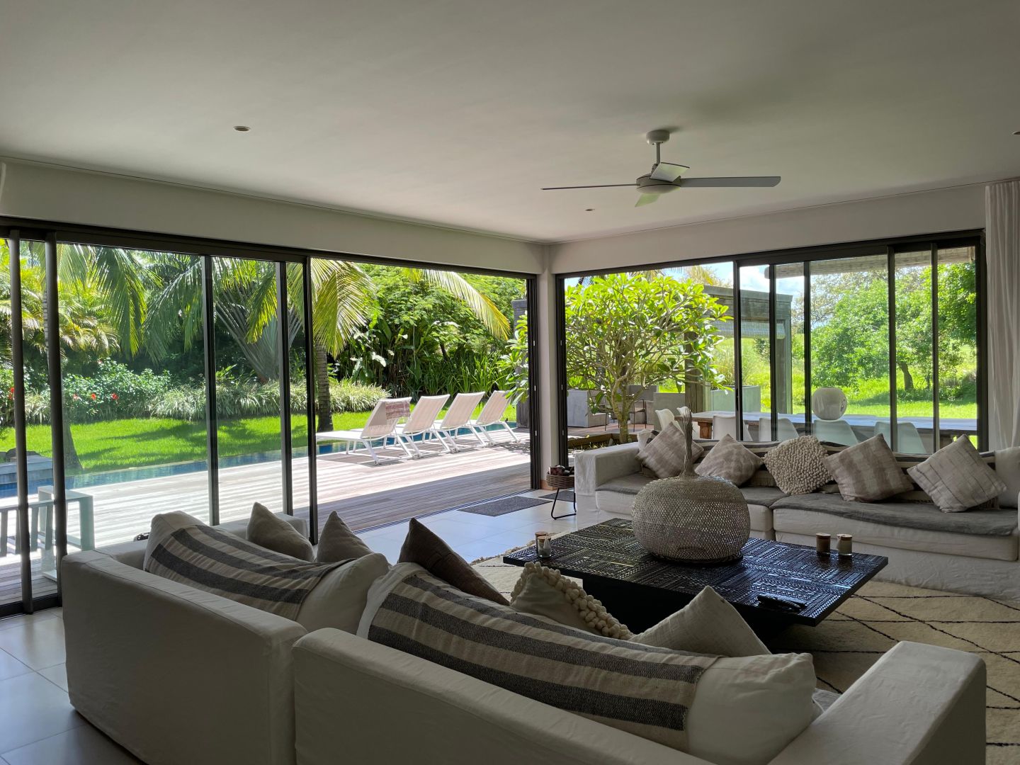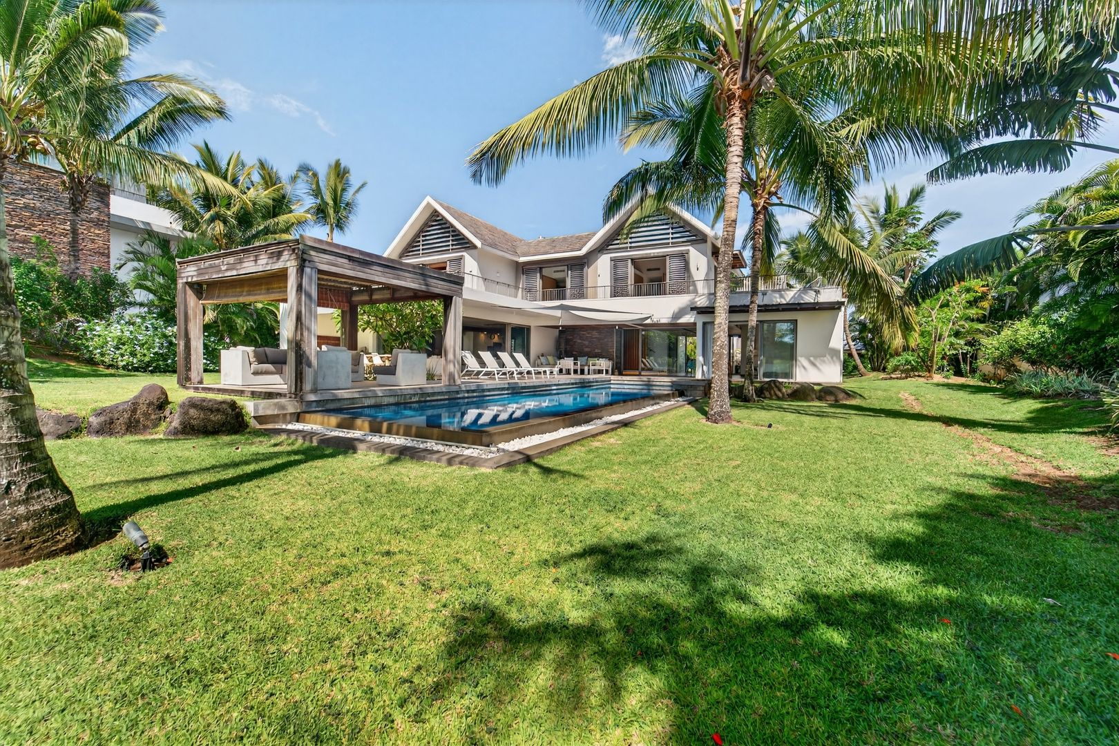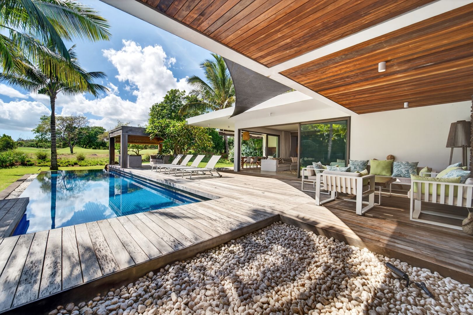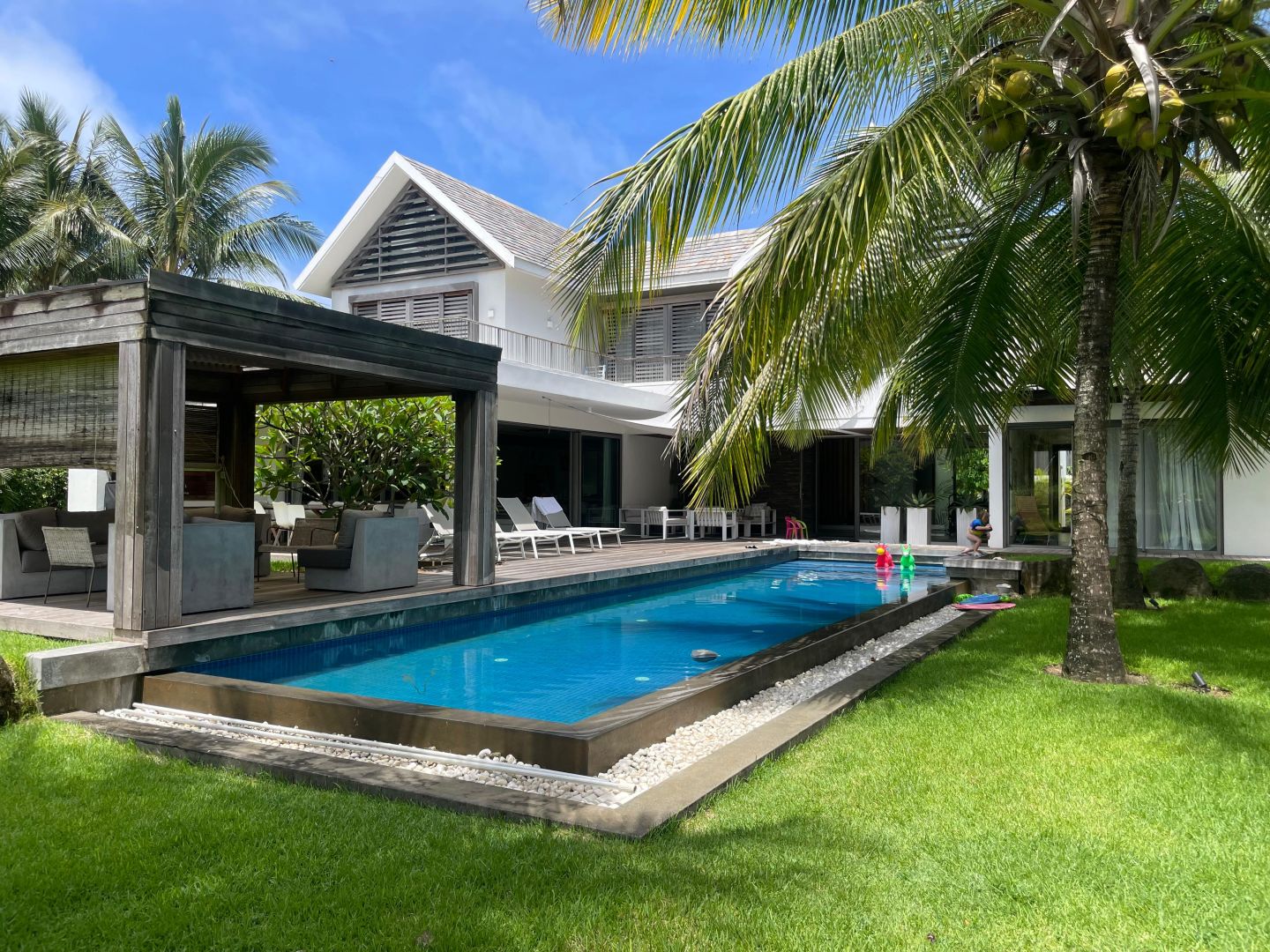 In this exceptional setting, this elegant two-storey golf villa sits on a private freehold plot of 1,508 m², offering an outstanding combination of space, comfort, and privacy. With a total built surface of 766 m², the villa has been conceived to elevate contemporary island living. Generous interiors invite natural light throughout the day, while refined architectural lines create a seamless and sophisticated flow across all living areas.