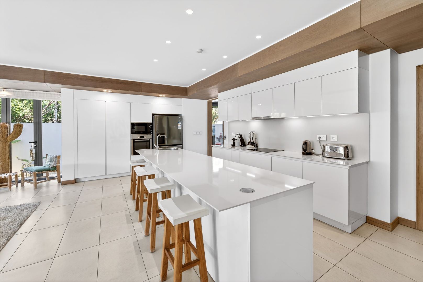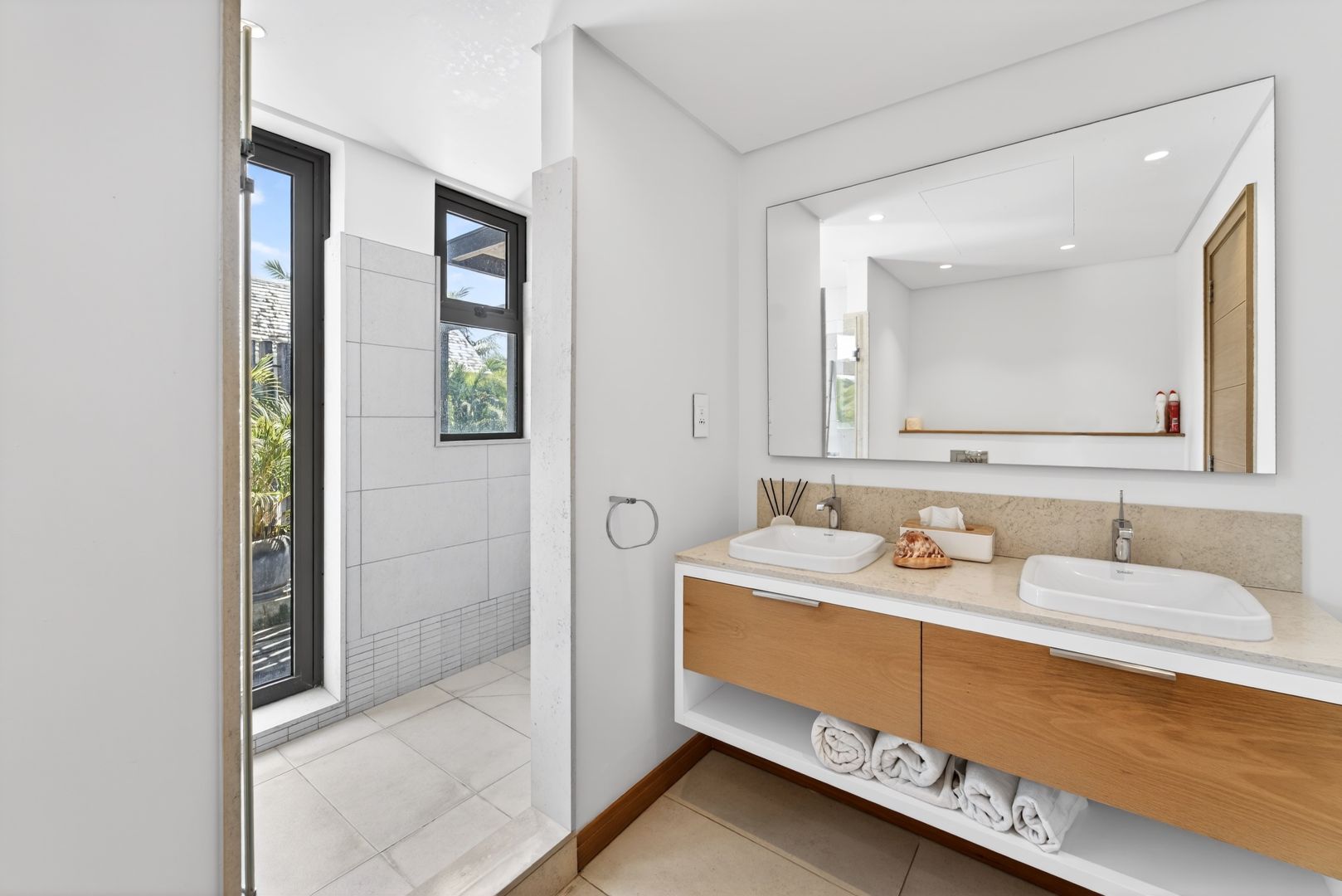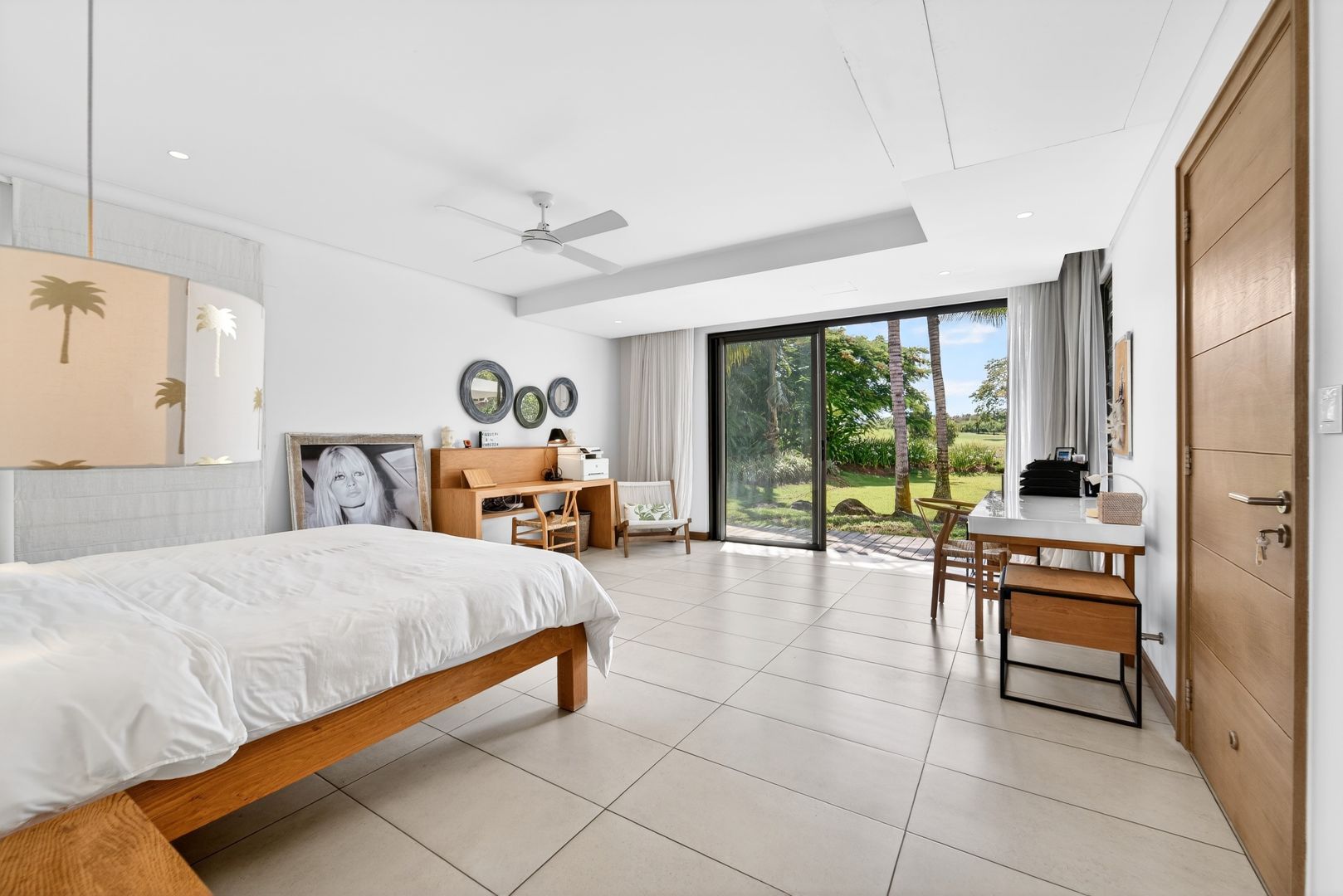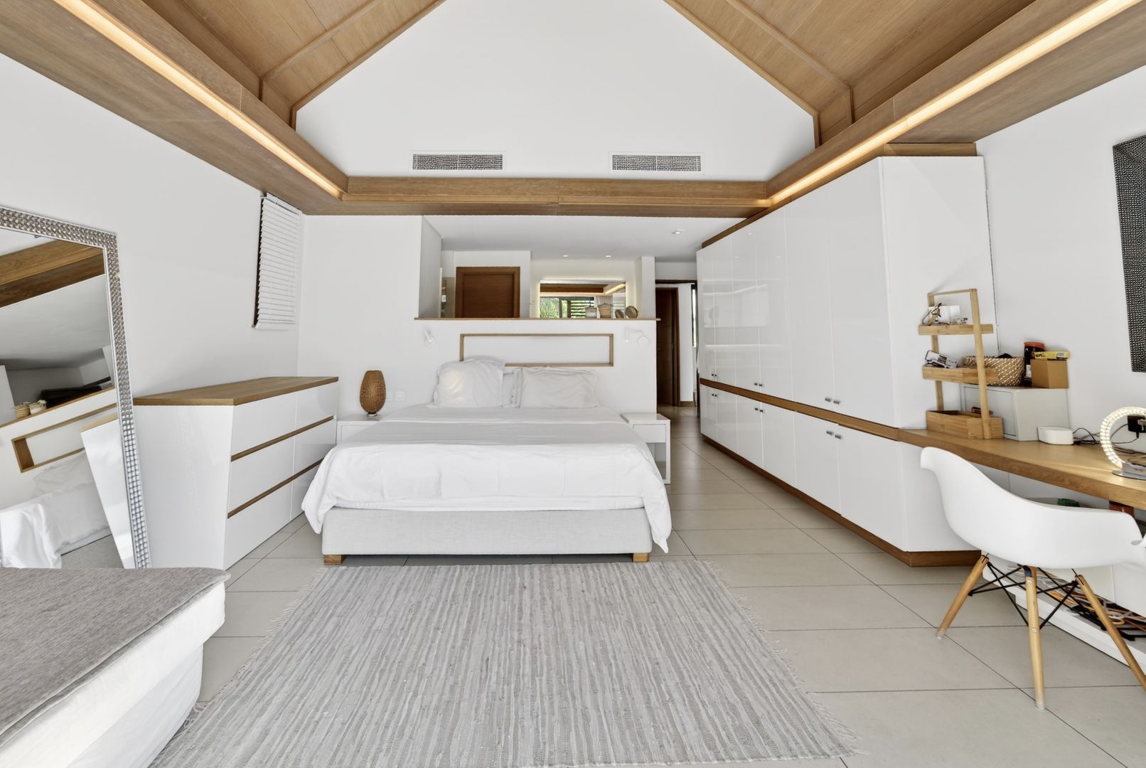 The bedrooms provide serene retreats, each designed with space, comfort, The bedrooms are conceived as exquisite private suites, each showcasing generous volumes and a soothing ambiance. The master suite enjoys direct access to the garden, creating an effortless continuity between indoor elegance and the natural surroundings. High-end finishes and a meticulously considered layout define the residence, appealing to discerning buyers in search of exclusivity and understated sophistication. Ready and available for purchase.
