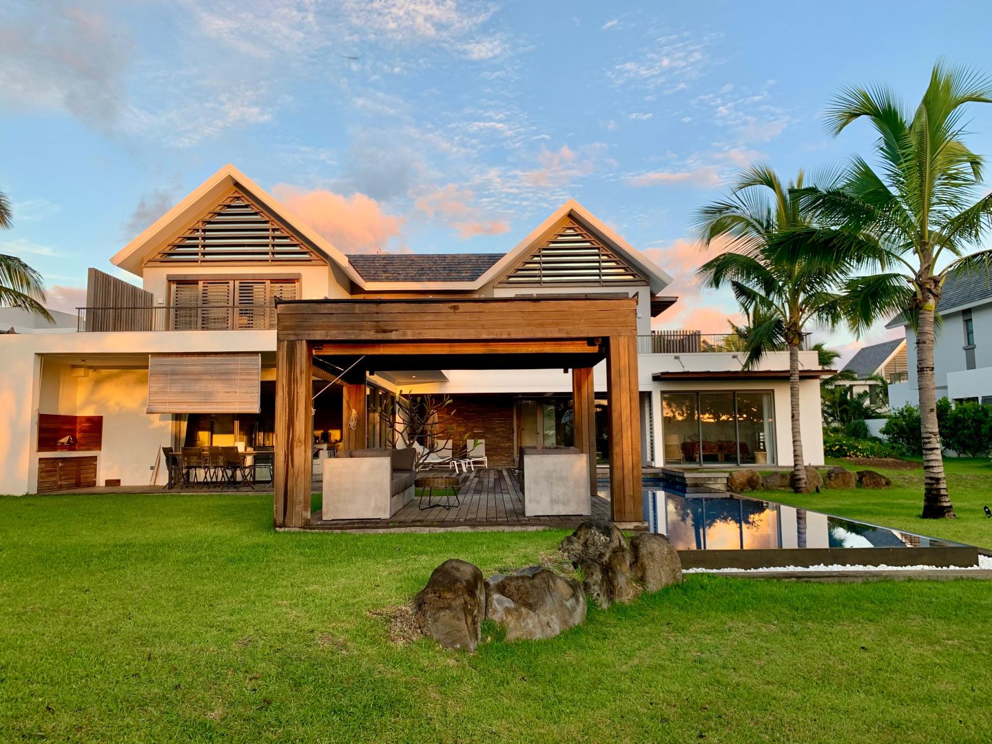 Mont Choisy Golf & Beach Estate, prime located estate in Grand Baie, stands as one of Mauritius’ prime relocation destinations, a prestigious residential destination, bringing together the elegance of a tropical lifestyle with the sophistication of a world-class development. Residents enjoy direct access to the renowned 18-hole championship golf course designed by Peter Matkovich, a modern and fully equipped gym, jogging paths set within meticulously curated landscapes, nearby beach access, and equestrian facilities within the estate’s lifestyle offering. This private, gated community has become a sought-after address among expatriates, offering security, serenity, and a vibrant international community.