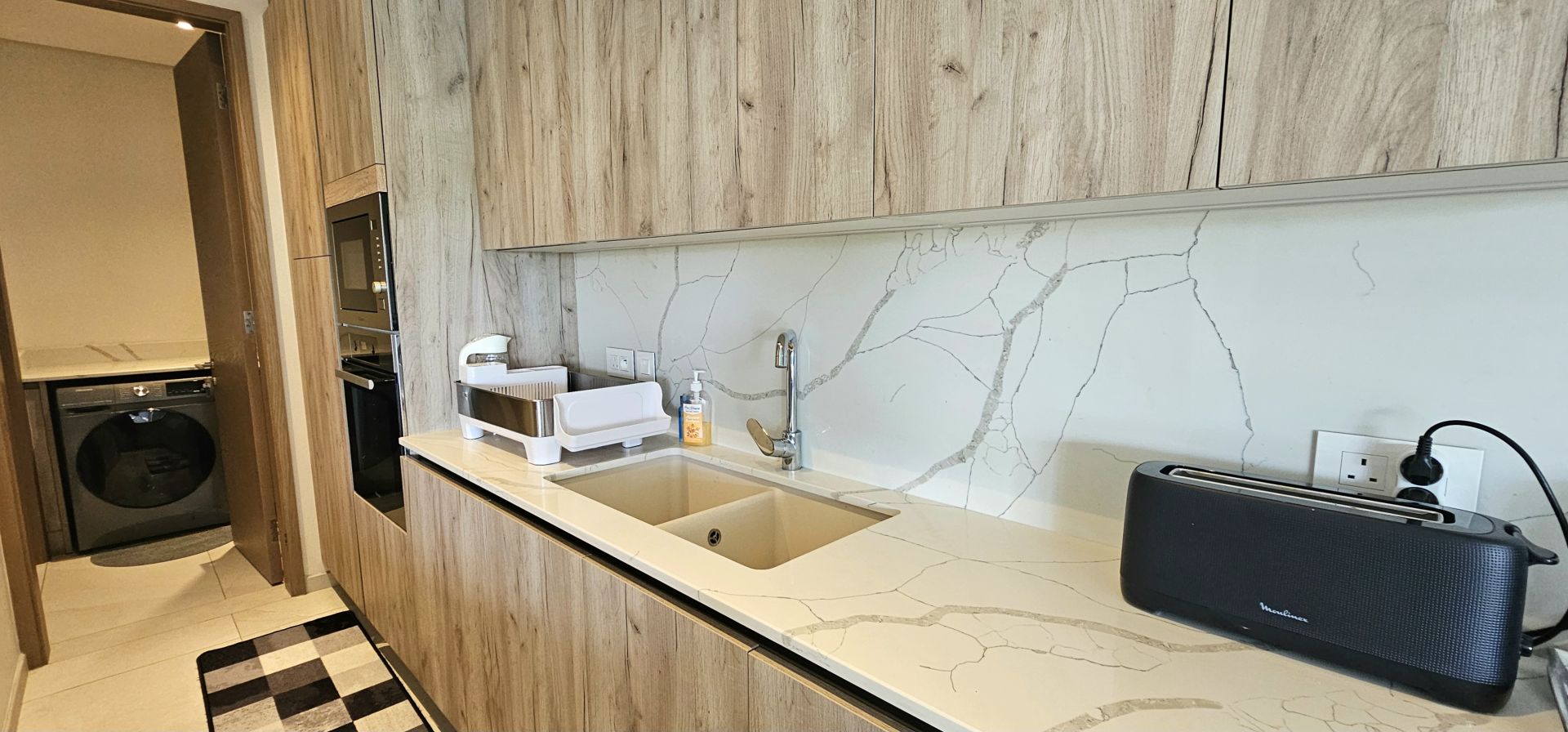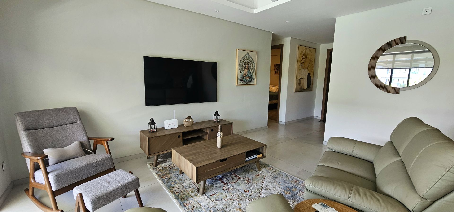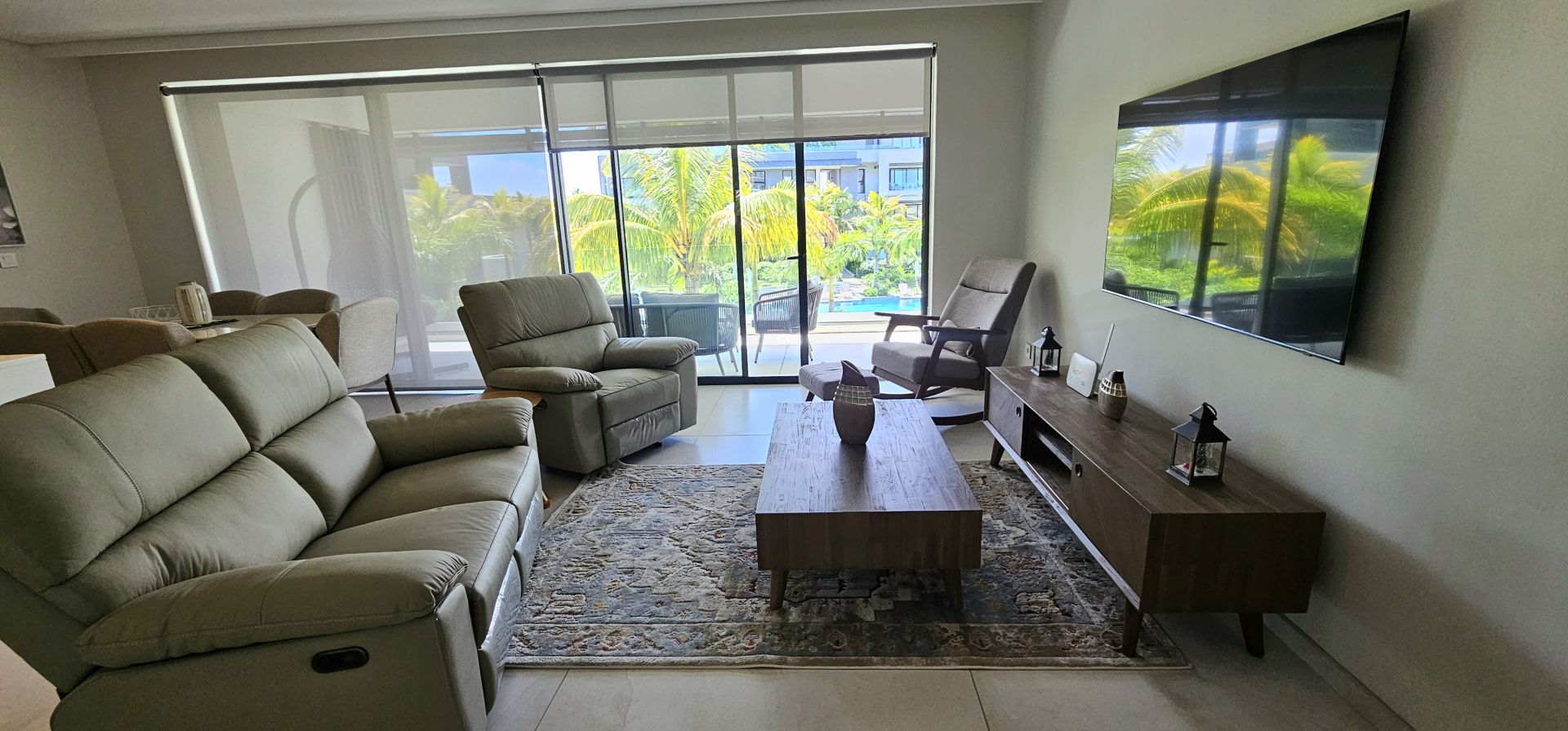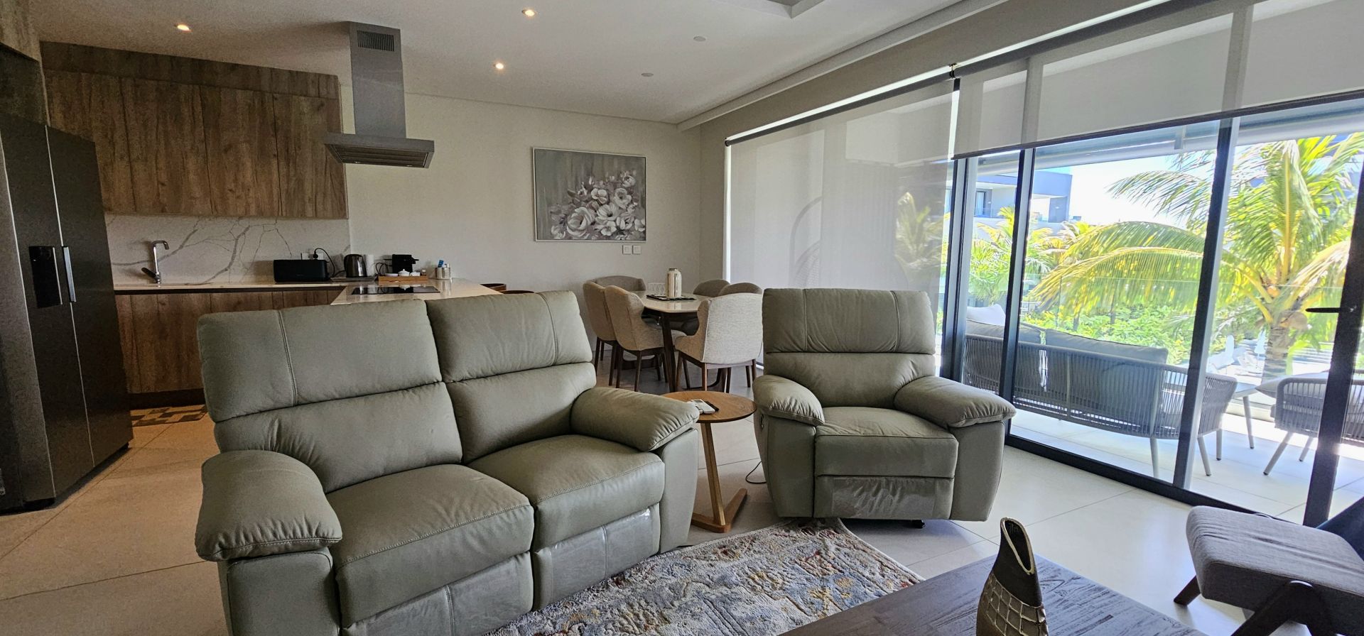 The apartment features comfortable open-plan living with a well-appointed