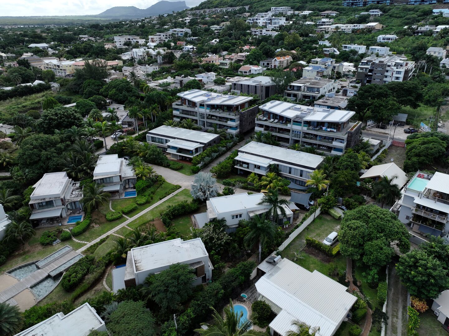 Practical features further support the convenience of the property, including an undercover designated parking bay, an external storage room, and lift access from the underground parking area to the apartment level. The estate itself is well positioned within Tamarin, allowing residents to reach beaches, shops, restaurants, and everyday amenities within minutes.