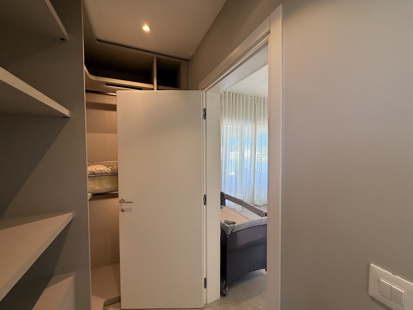 Practical considerations are well addressed. The unit includes a covered parking space, a private ground-floor storeroom, and access to shared infrastructure such as a generator with extended capacity and a water tank system. The residence itself is secured by an electric gate and maintained through an active syndic, which oversees the upkeep of common areas, including the landscaped garden and communal swimming pool.