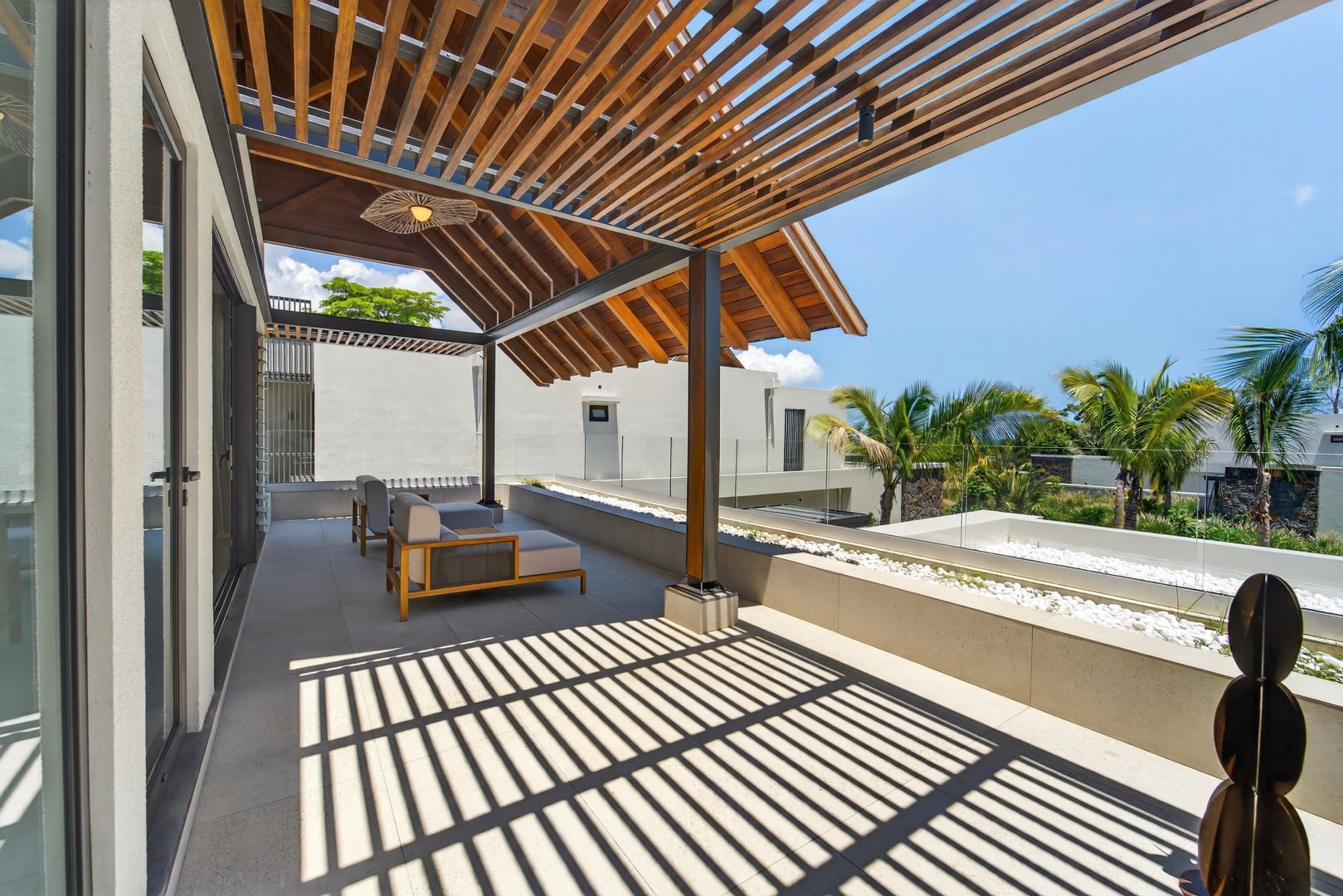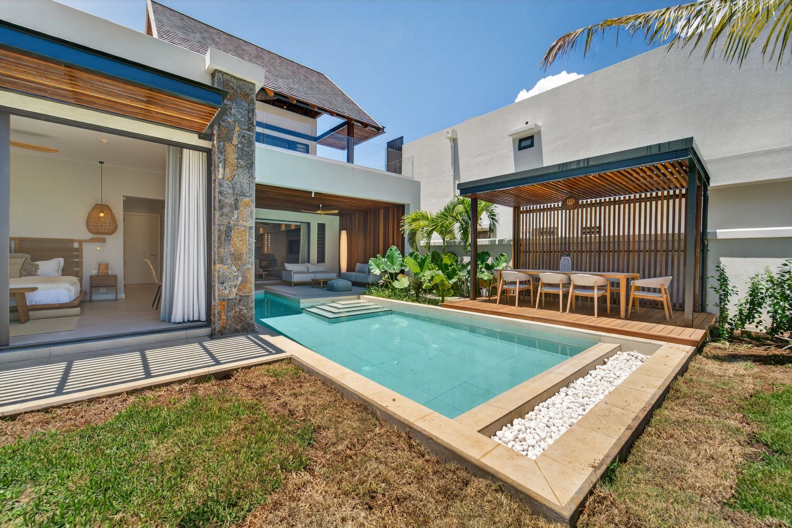 What sets Shoba Villas & Residences apart is the seamless fusion of contemporary design with the rich traditions of Mauritius. The interior design and decoration, curated by the talented Paule de Romeuf, bring the essence of Mauritian culture into every corner of your home, offering a truly unique living experience that captures the spirit of the island.