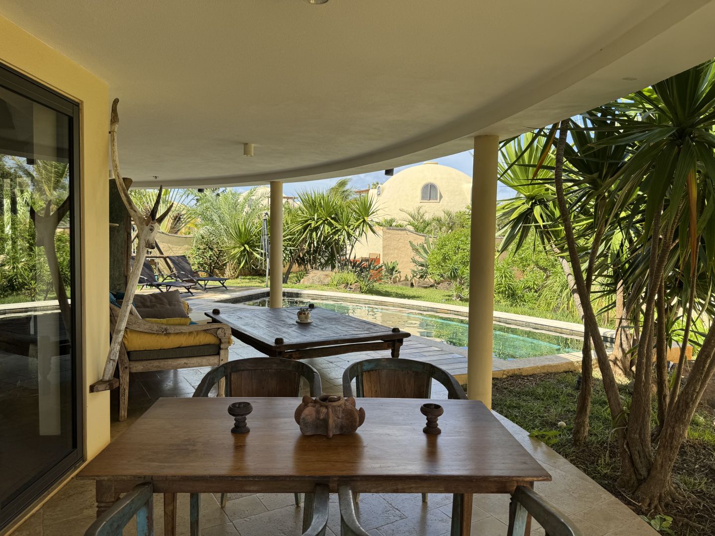 Villa dôme unique à Albion – Terrasse avec vue mer, piscine et jardin tropical