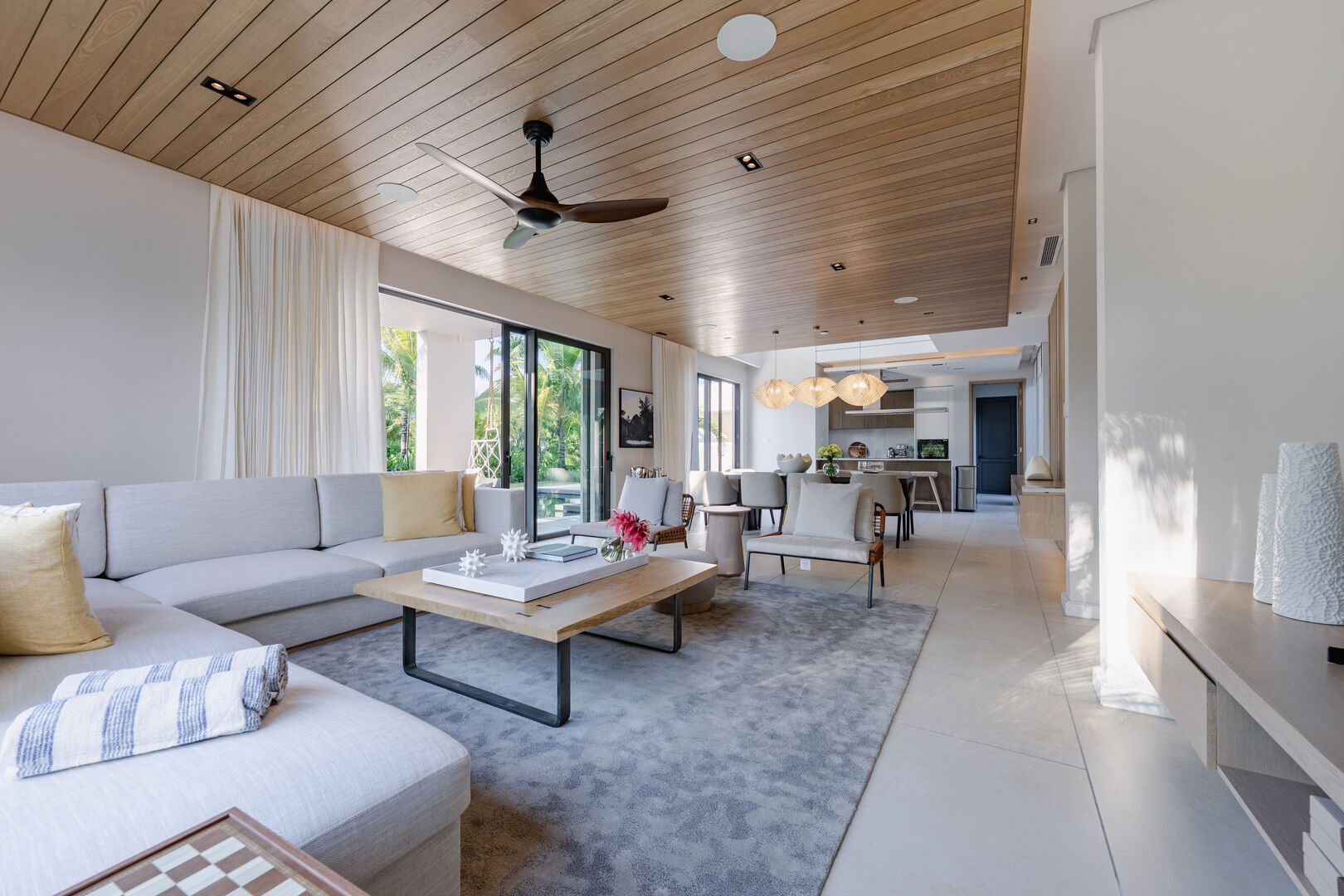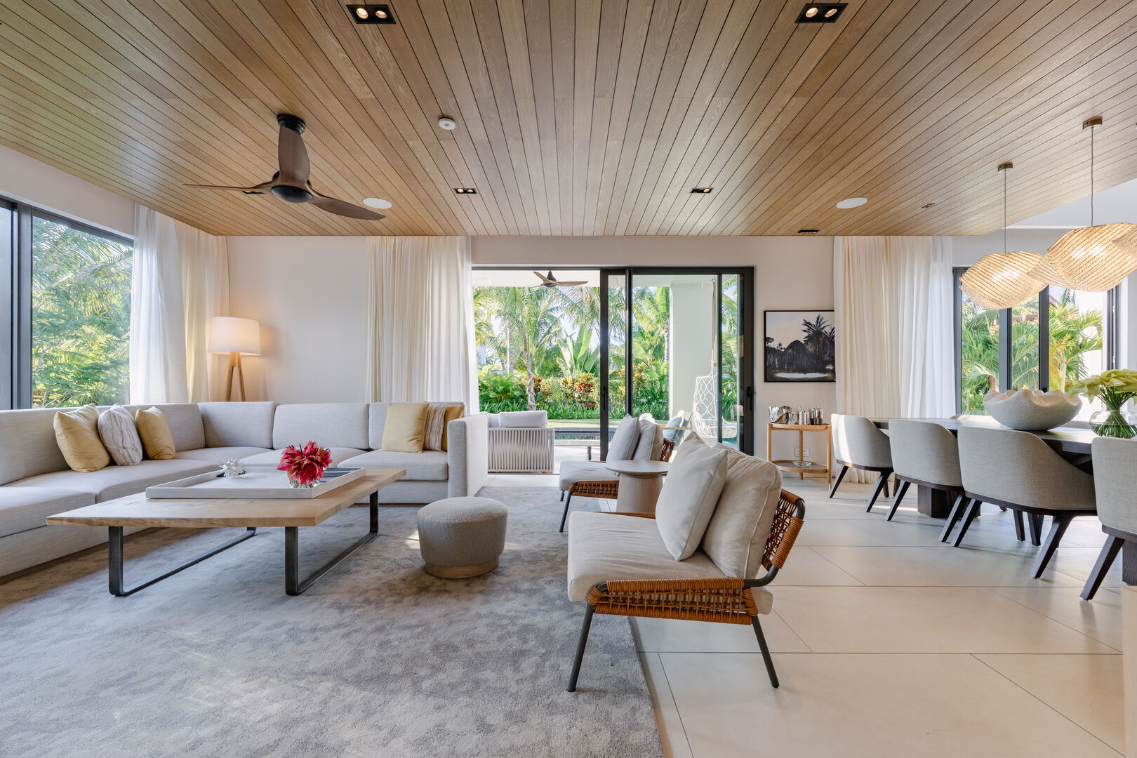 une continuité fluide entre les espaces intérieurs et le jardin paysager. La