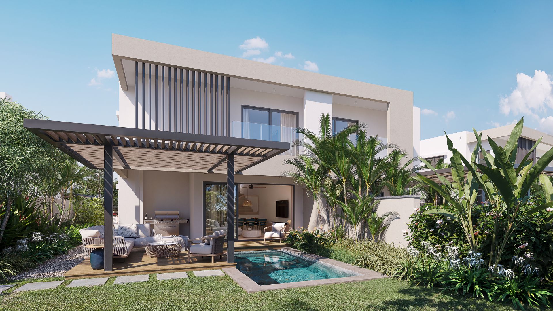 Chaque résidence a été conçue pour un mode de vie pratique au quotidien. Les intérieurs lumineux s’ouvrent harmonieusement des cuisines en open space vers les espaces de vie, puis vers des jardins privés, favorisant un style de vie fluide entre intérieur et extérieur. Les configurations de trois chambres offrent une grande flexibilité, avec des options de suites au rez-de-chaussée et des espaces privés à l’étage. Des options complètes permettent également d’ajouter une quatrième chambre, une piscine privée et des espaces extérieurs de réception — idéals aussi bien pour une résidence principale que pour un investissement locatif.