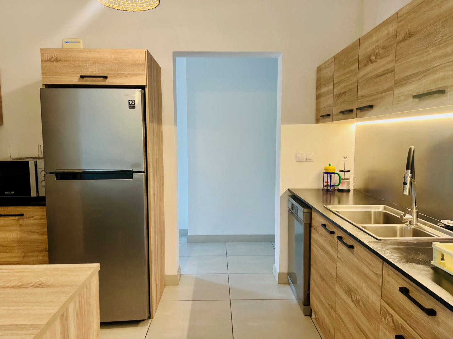 Cet appartement moderne de 91,36 m2 se compose de 2 chambres (1 en-suite avec un dressing), 2 salles de bains, une belle cuisine ouverte/salon/salle à manger et une buanderie/sculerie séparée.