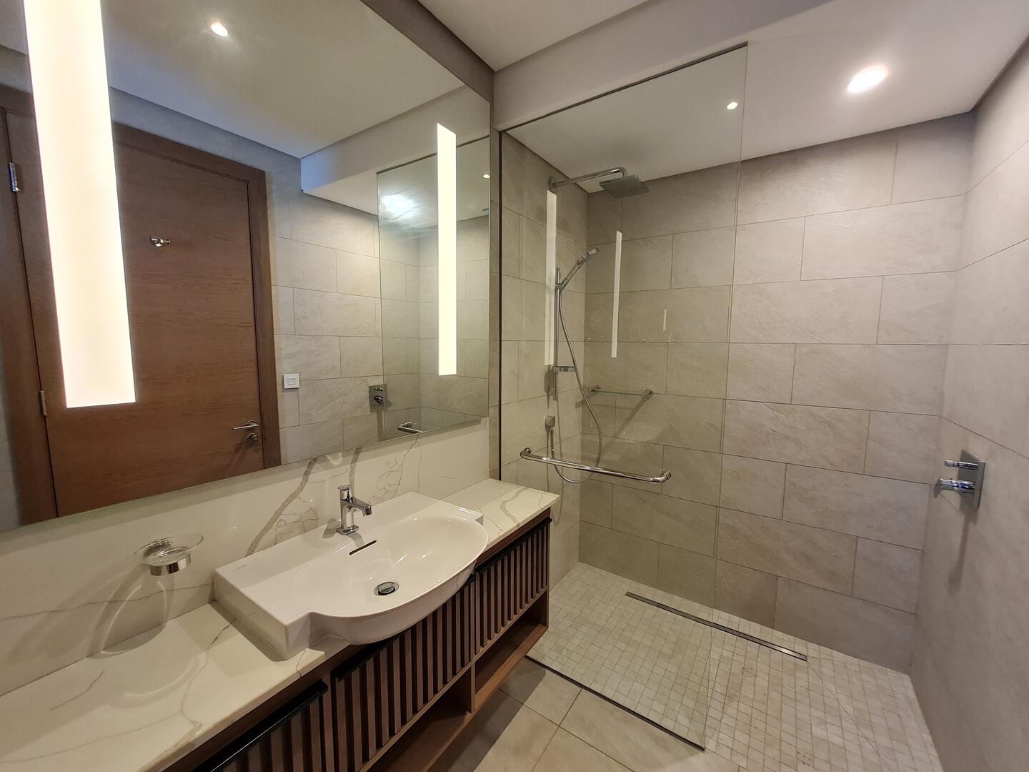 Cet appartement de 3 chambres au rez-de-chaussée (233,8 m² de surface totale / 200 m² de surface utile) offre des espaces généreux et lumineux. La pièce à vivre, comprenant salon, salle à manger et cuisine ouverte, s’ouvre sur une spacieuse véranda et un jardin privé de 72 m². La suite parentale dispose de sa salle de bain attenante et d’un dressing, tandis que les deux autres chambres partagent des salles de bain bien agencées.