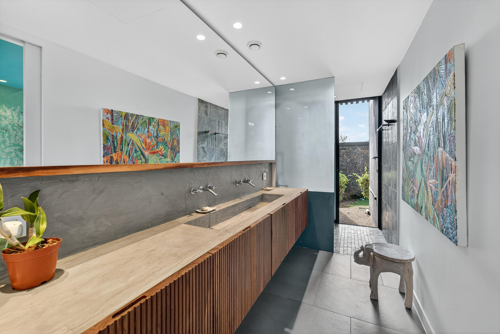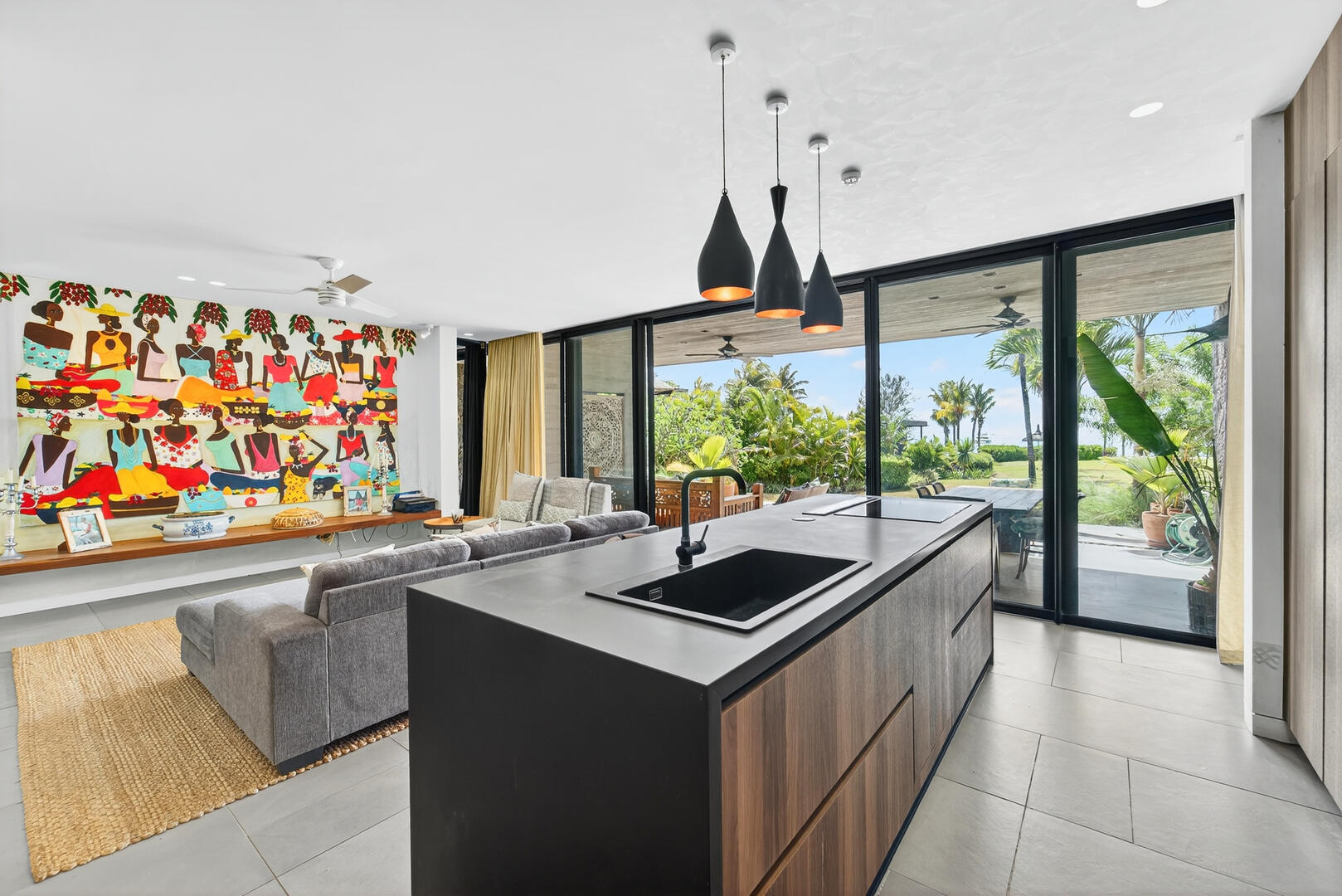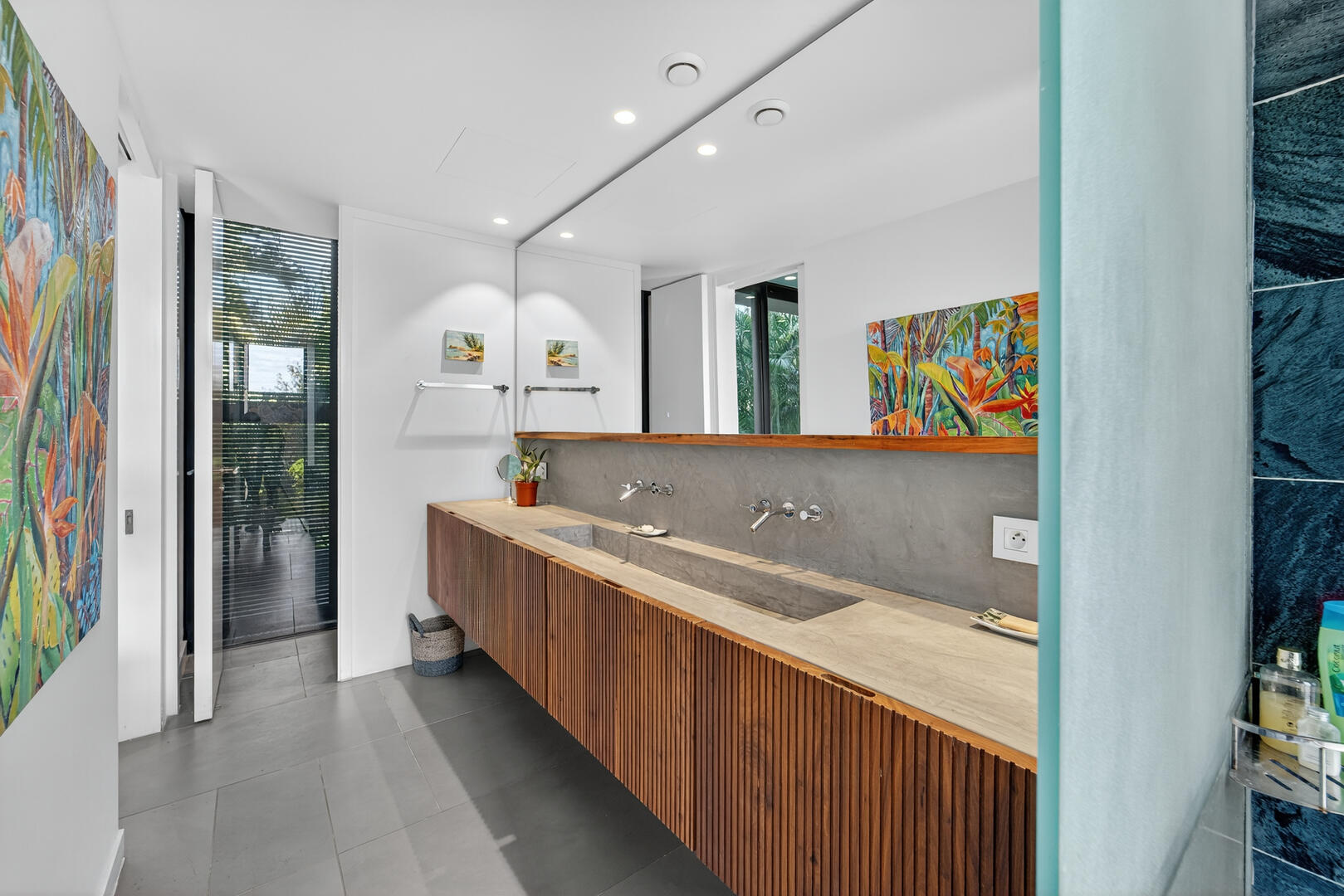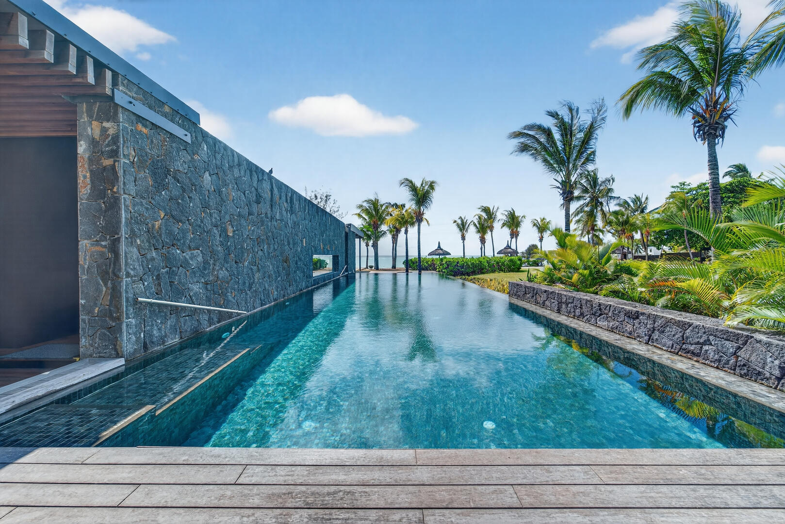 piscine à débordement faisant face au lagon, d’une salle de sport entièrement