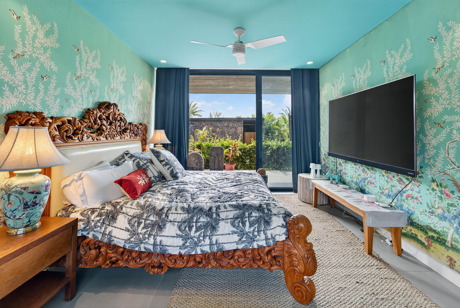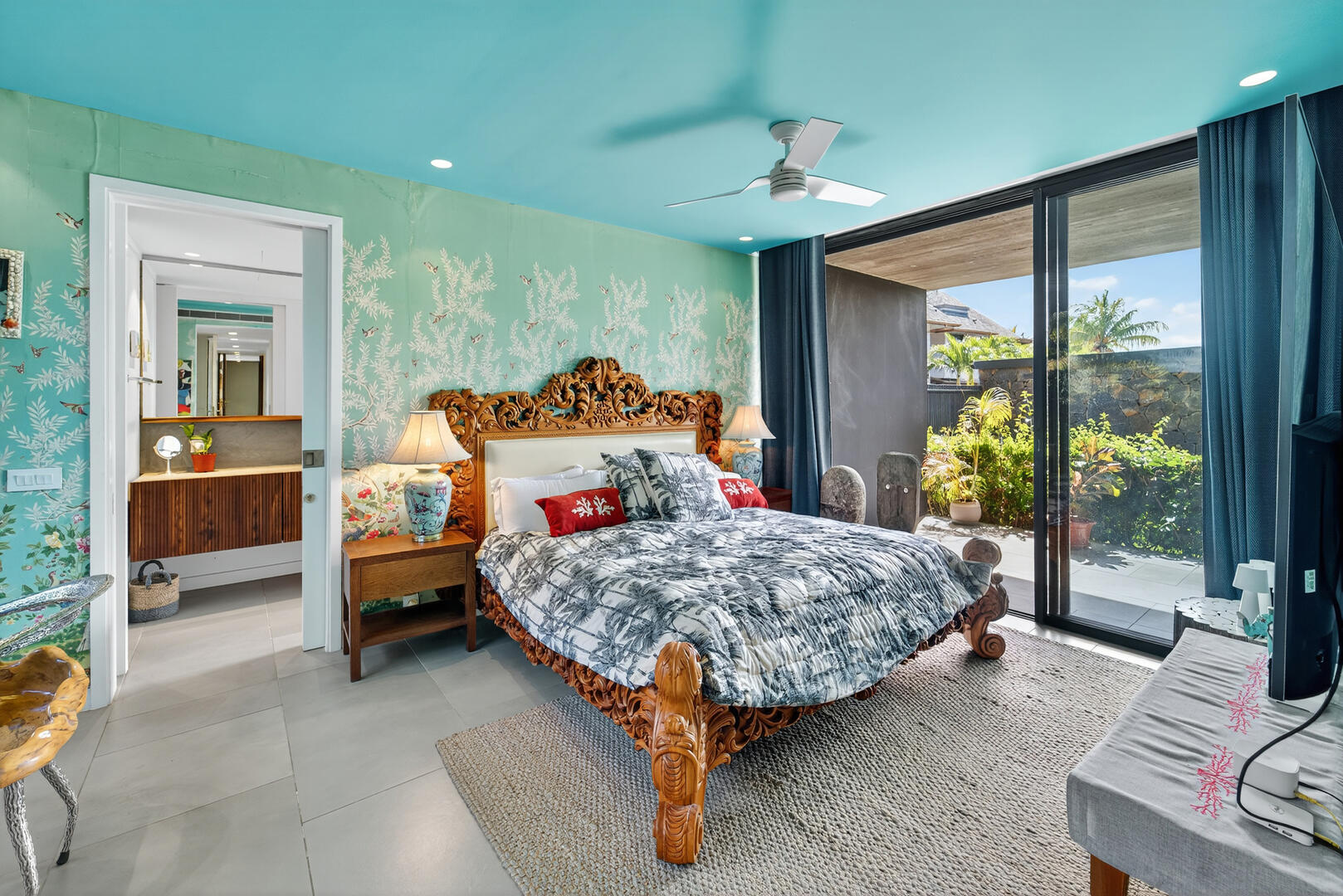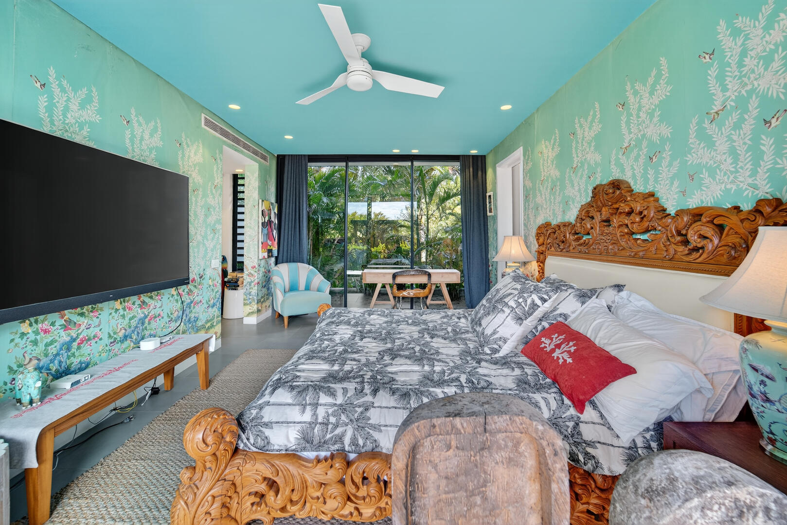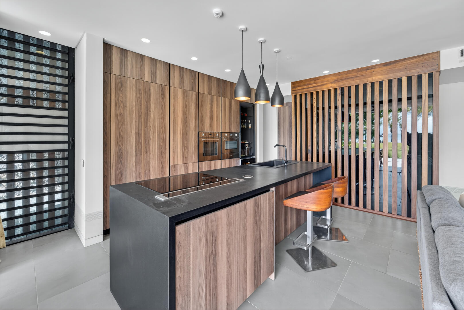 piscine à débordement faisant face au lagon, d’une salle de sport entièrement