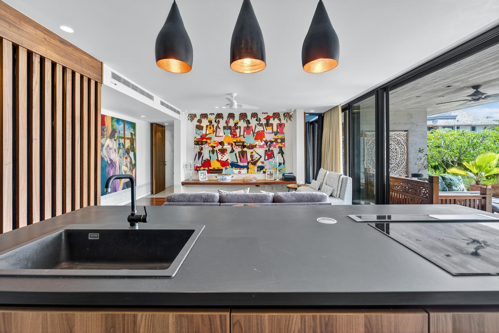 la cuisine ouverte, la salle à manger et le salon, s’ouvre sur une large