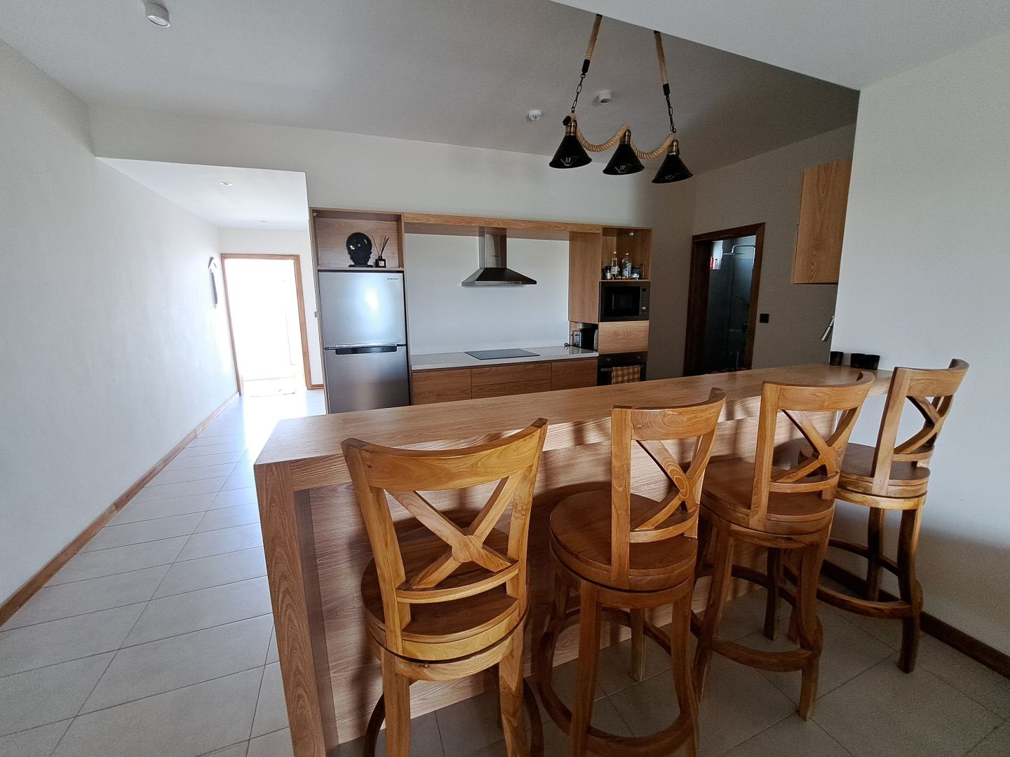 La pièce à vivre, spacieuse et conviviale, s’ouvre sur un grand balcon, idéal pour profiter de moments de détente en plein air, recevoir des invités ou simplement apprécier la brise tropicale.