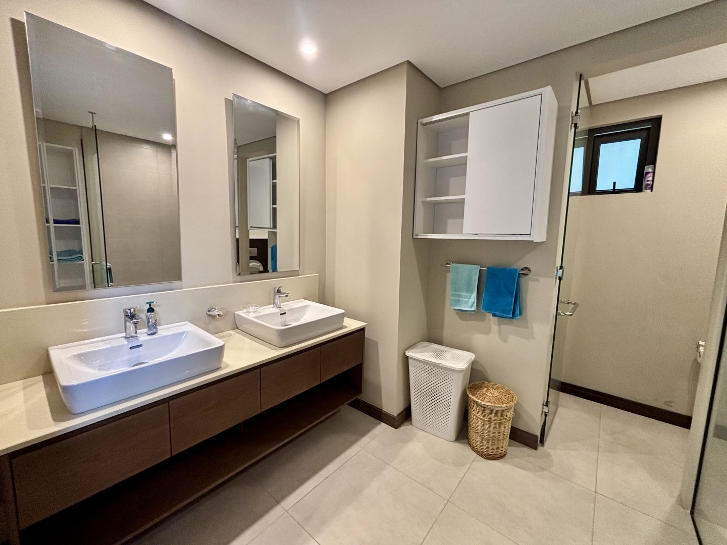 L’espace de vie se compose d’un salon et d’une salle à manger ouverts sur une cuisine bien dimensionnée, formant un ensemble convivial et lumineux. L’appartement dispose de trois chambres, dont une suite parentale avec salle de bain attenante, ainsi que deux autres chambres, dont l’une bénéficie également de sa salle de bain en suite.