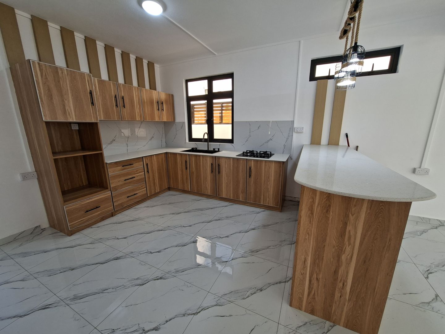 moderne, est équipée de rangements, d’une plaque de cuisson et d’un évier,