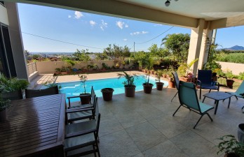 Quiet with sea view, a 4 bedroom, newly built house with swimming pool for sale in a new morcellement of Albion. Offering 3 bathrooms, with 1 attached, lounge & dining area, TV room, laundry room, garage with electric door and a nice garden. Attached with the main house is a studio of approx. 40 m² with separate bathroom.