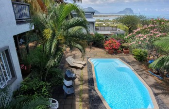 Located in a renowned, private domain of Black River, in a quiet place, we offer you this beautiful property of approximately 375sqm with nice finishing. The villa benefits from a garden with swimming pool and ideal south-west orientation perfect for summer days. Inside, the unusual layout of the different and tastefully decorated areas works perfectly. The villa consists of an entrance, a semi-open kitchen fully equipped with pantry, a superb living space opening onto the terraces with an amazing view over the sea and the iconic mountain of Le Morne Brabant, four bedrooms including two ensuite, one common bathroom, a TV room, a laundry and an open garage for two cars.