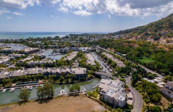 Immaculate and Move-In Ready! Experience luxury living at its finest in this beautifully renovated duplex located in the prestigious La Balise Marina, Mauritius. Meticulously restored to its original condition, this stunning property boasts three spacious bedrooms, offering picturesque views of the marina and lush landscaped gardens. The modern open plan kitchen, equipped with brand new appliances, seamlessly flows into the inviting living and dining area. Step outside to your own private oasis, featuring a refreshing pool, a covered patio, and captivating water views.