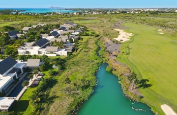 Introducing Island Signature Villas - an exclusive collection of 15 distinguished villas nestled within a private road access. Among these, a magnificent 5-bedroom Island Signature villa stands as a jewel, fully furnished and available for sale on the prestigious Mont Choisy Golf estate, commanding a picturesque view of the lush green fairways. This villa presents itself as the ideal family haven in Grand Baie, where the boundaries between indoor and outdoor living seamlessly dissolve.