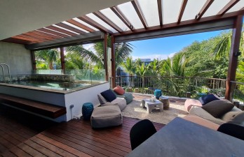 Immerse yourself in a modern luxury atmosphere. Explore this stunning 2-bedroom penthouse where indoor and outdoor living blend seamlessly to create the perfect setting for gatherings with friends and family. Featuring 2 en suite bedrooms, a fully equipped kitchen with a guest toilet. The penthouse boasts a delightful plunge pool with beautiful decking around. The complex offers a long common swimming pool. Mont Choisy Golf and Beach Estate boasts an 18-hole golf course designed by Peter Matkovich, a fully equipped leisure center with a modern gym, sauna, hammam, Olympic pool, two paddle tennis courts, two tennis courts, a kids' corner, and a yoga pavilion. The clubhouse is a very cozy meeting place with a restaurant, bar, and pro shop.