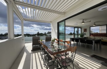Within walking distance of the beach this immaculate penthouse offers secure, upmarket accommodation with exquisite seaviews of the West Coast and out to Le Morne Brabant. In a quiet residential area and an estate of only four owners you have the opportunity of owning this exclusive penthouse. Whether you are looking for a new home, a lock-up and go holiday home or an investment property to rent out, this property will delight! With the Mauritian climate in mind, this home has been fitted with electric shutters, air-conditioners & ceiling fans throughout, the wrap around terraces have retractable awnings, shade blinds as well as cyclone shutters. There is a jacuzzi / training pool on one side of the terrace as well as an entertainment, dining and tanning area on the other side. The generous open plan living spaces flow seamlessly incorporating the exquisite fully fitted kitchen, the terraces and every part of the home is blessed with a view whether it be a mountain backdrop or the breathtaking ocean vistas. All three bedrooms are fully fitted with built-in cupboards, blinds, ceiling fans and air-conditioning as well as having their own en-suite bathroom. This property is wheel-chair friendly with a private elevator, there are two secure undercover parking bays, a storeroom and the estate has a full generator as well as water backup. An opportunity like this cannot be missed - Contact us for your exclusive viewing today!