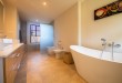 Upstairs is the main bedroom with palatial en-suite bathroom. A beautiful free standing bath, double vanity, separate shower and bidet give a truly luxurious feel.