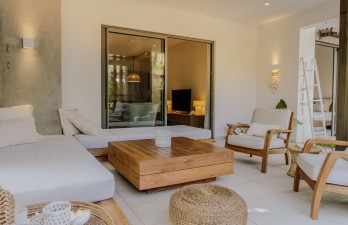 Discover elegance and luxury living at its finest with this stunning ground floor apartment, located just 100 meters from the powdery sands and crystalline waters of Mont Choisy beach. Featuring: