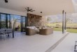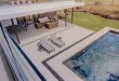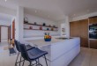 The home features large Italian tiles throughout, enhancing its luxurious appeal. The kitchen is a chef's dream, with ample work surfaces, high-end appliances, and carefully considered air flow for comfort during summer months. This open-plan kitchen flows effortlessly into a light, airy living area, which in turn opens onto a terrace, landscaped garden, and a sparkling pool.