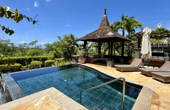 Step into your home in paradise with this exquisite 3-bedroom home. Each bedroom is en-suite with ample fitted cupboards and lavish bathrooms. Wooden floors add warmth, while the upstairs master suite boasts a four-poster bed, a private balcony with breathtaking sea views, and a spectacular outdoor shower. The open-plan living and dining area flows seamlessly to the patio, complemented by a fully fitted kitchen and separate scullery. Outside, a dream entertainment space awaits—gazebo, sparkling pool, outdoor dining, and a lounge area. Relax in the hammock and soak in the peace and tranquillity.