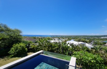The villa features three generously sized bedrooms, two of which open directly onto the lush tropical exterior garden, seamlessly blending indoor and outdoor living. A stunning infinity swimming pool invites relaxation, while the peaceful atmosphere of the villa provides the ultimate escape.