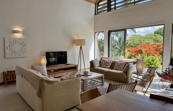Top floor penthouse with private pool offering lovely views of Mont Choisy park. Beautiful living space, very bright. Nice decoration combining mixture of wood and blue. 3 bedrooms en-suite and fully equipped kitchen.