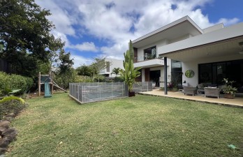 The outdoor spaces are designed to bring families together: a private swimming pool bordered by a pergola for shaded afternoons, a lush landscaped garden, and even a dedicated jungle gym — a thoughtful addition for children. With safe, quiet roads throughout the estate, kids and pets can move freely, reinforcing Akasha’s reputation as one of the best environments in Mauritius for raising a family.
