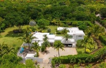 Nestled in the prestigious and tranquil enclave of Forêt Daruty, this stunning private villa offers an exceptional lifestyle surrounded by lush greenery and absolute privacy. Set on a generous 5,605 m² residential plot, the property is fully enclosed with natural boxwood hedging, ensuring no vis-à-vis and a serene living environment.The 400 m² standalone villa (not part of a complex) features elegant architecture and thoughtfully designed living spaces. The home offers four ground-floor bedrooms, including two en-suite, as well as a private office upstairs, ideal for remote work or study. There are four modern bathrooms (showers only) and five toilets, including a guest toilet.The villa boasts a spacious American-style kitchen with laundry area, opening onto bright living and dining spaces designed for comfort and entertaining. Outdoor living is elevated with a wooden terrace equipped with electric roller shutters and a spectacular 14 x 3 m overflow swimming pool.Additional highlights include:• 5 air-conditioning units (including the office)• Automatic generator housed in its own generator room• 300L electric water heater (Rheem) plus two 9,000L water tanks• Large private parking for at least 6 cars + open garage for 2 cars• Electric gate• BRINKS alarm system and 4 security camerasThe property is located within a private estate, with indivisible land and buildable surface up to 20%, allowing ground + 1 maximum elevation. Ideally positioned just 100 meters from the forest, it is perfect for nature lovers, walkers, and joggers, while also being close to renowned private schools.This rare property combines luxury, privacy, and nature in one of the most sought-after residential areas.A must-see villa for discerning buyers.